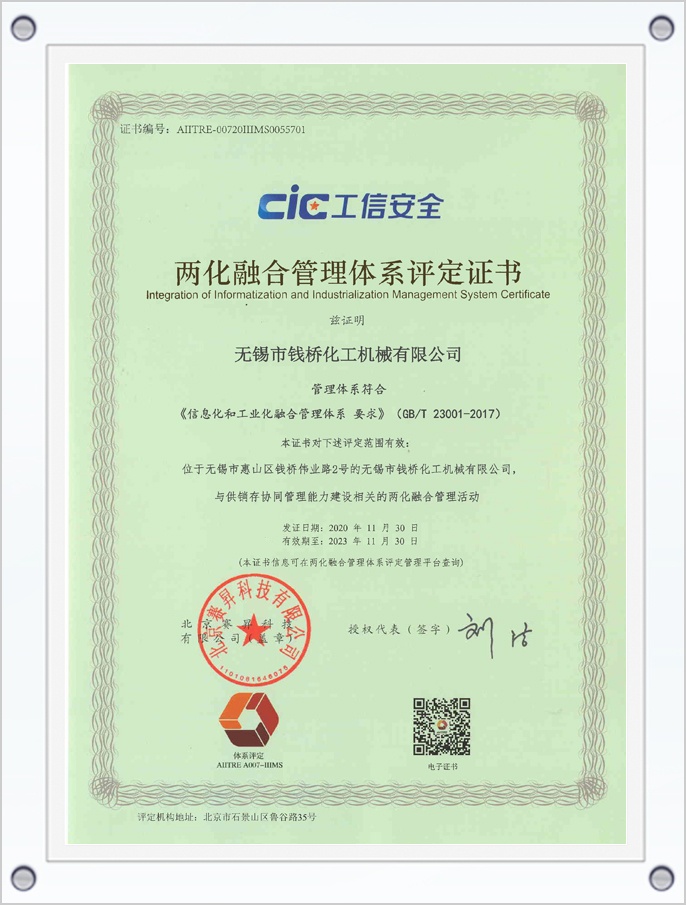 兩化融合管理體系評定證書