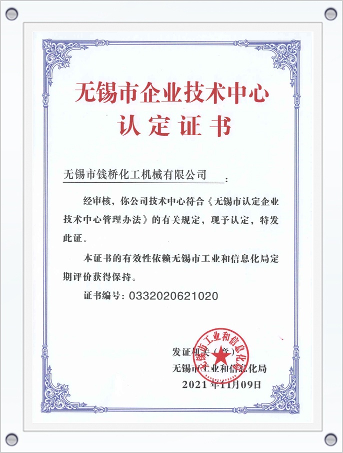無(wú)錫市企業(yè)技術(shù)中心認(rèn)定證書(shū)