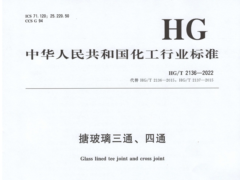 中華人民共和國化工行業(yè)標(biāo)準(zhǔn)HG/T 2136-2022搪玻璃三通四通 點擊下載搪玻璃三通四通行業(yè)標(biāo)準(zhǔn)