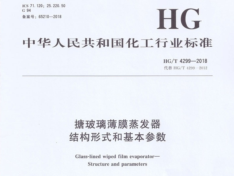 Wuxi Qianqiao Chemical Machinery Co., Ltd. participated in the drafting of the people's Republic of China chemical industry standard Hg / T 4299-2018 glass-lined wiped film evaporator structure and parameters. ...